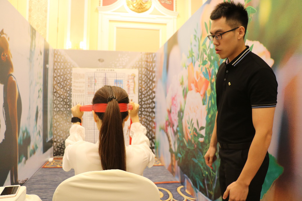 本次阳光兴亚在论坛展示了最新的项目“形体美学互动体验”,旨在通过此项目展示最新的体态矫正课题,近年来,由于人们长时间玩手机、看电脑、不运动等因素影响,各年龄层群体出现体态不正的数量骤增,含胸驼背、乌龟颈、盆骨前倾、高低肩、脊柱侧弯、X/O型腿等,正逐渐侵蚀大家的建康,普通的健身房运动与单一的自发运动可以提升个人体能,却不能有效解决体态矫正问题,故而阳光兴亚特别推出体态达人项目,帮助体态不正人群矫正身体形态,同时也帮助普通用户预防体态不正,优化身体曲线,由内而外帮助用户矫正身体形态,建立正确的行为习惯与理念。